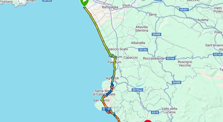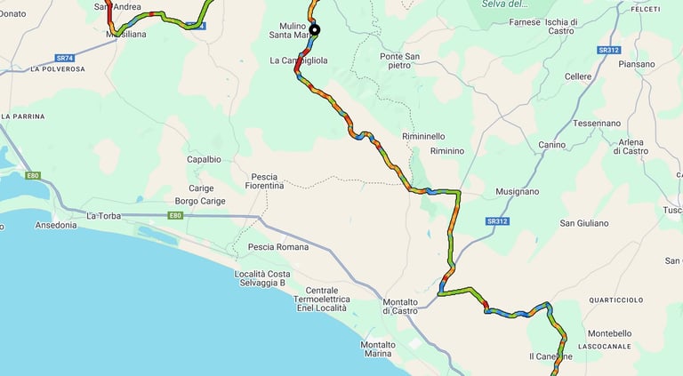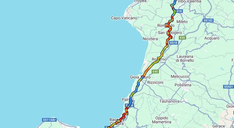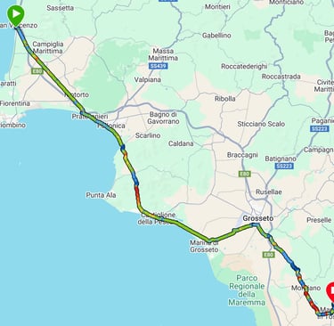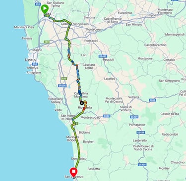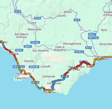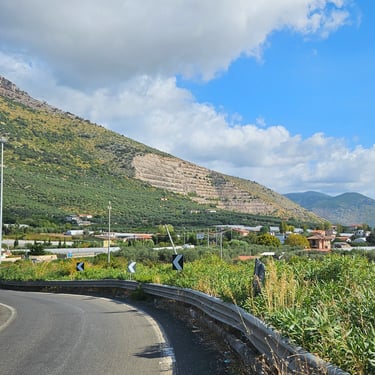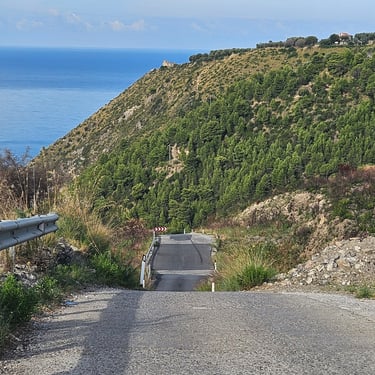 A fairly long day at about 70 miles with the worst of the undulations being in the first 1/3rd of the ride. This was followed by 26 miles along the fairly busy SS18 highway which was fairly smooth and flat. It was good for clocking up miles but was also fairly unpleasant cycling. No photos were taken along this section.