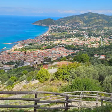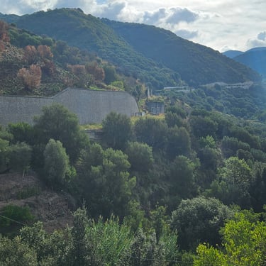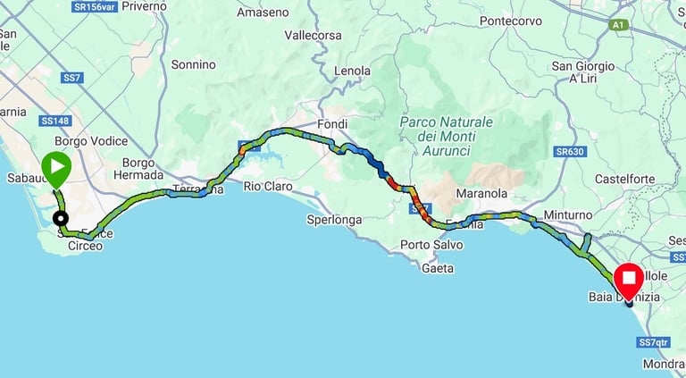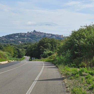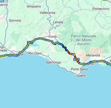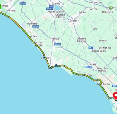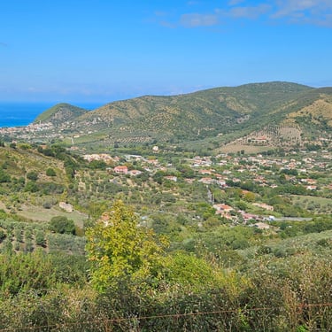 My objective of the day was to try to get over the one significant hill (summit approx 270m) before the weather got too hot. I had identified that there were several refreshment options in the town of Itri (which didn't feature in the route information sheet) which was just after the summit and was thus the suitable place for a break before continuing to the end. A 7:30 breakfast resulted in departure at about 8:50.