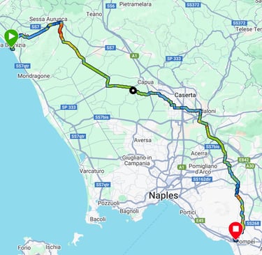 No cycling today but there was an opportunity to discover why Pompei is famous. The day started by wondering where the next day's route was through the hills to the south of the city as there was no visible gap.