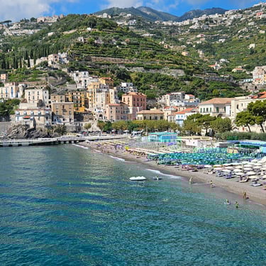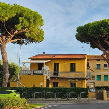 The Hotel il Delfino was next to the sea and, unusually, the balcony had a clothes airer which was useful for drying washed clothing. The room, however, had the major hazard of water dripping from the air conditioner. Spare towels were used to try to control the puddle on the floor. The problem was evidently not new as the floor tiles were starting to lift. Dinner was at a very busy pizzaria.