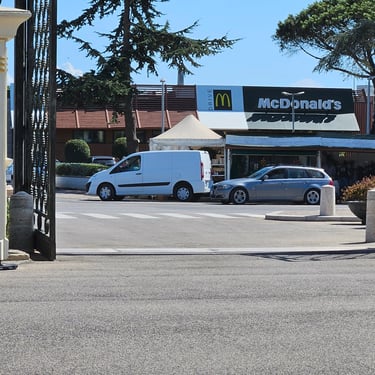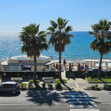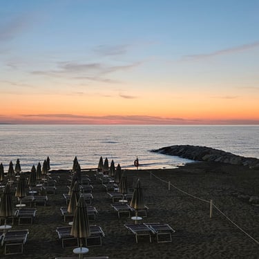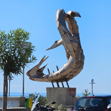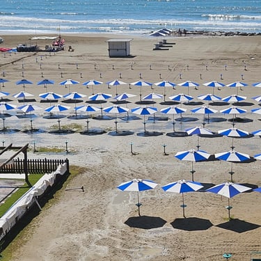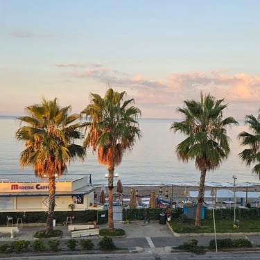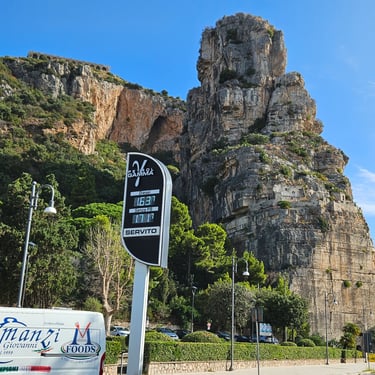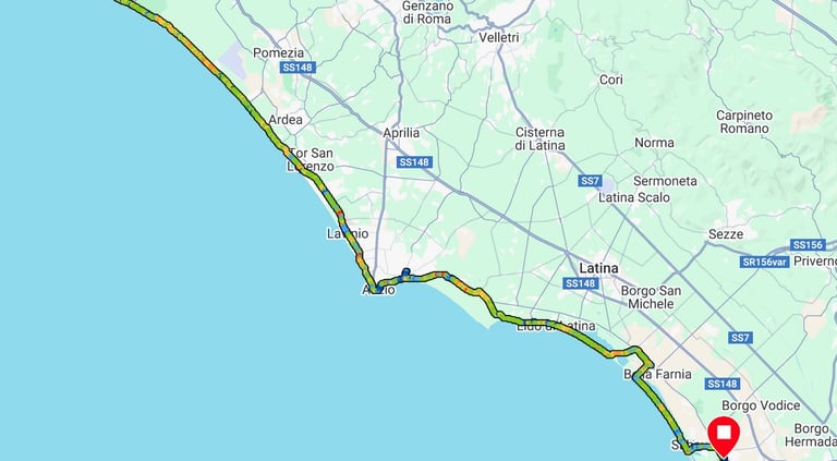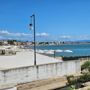 The rain had cleared and a few remaining clouds gradually disappeared. Breakfast was from 7am although we disn't get moving until 08:40. The provided route went inland of Anzio and Nettuno but, after much group discussion of the options for the day, there was consensus to follow the coast to take advantage of refreshment options in the two towns. It was a relatively easy day of cycling as nowhere on the route was higher than 40m. An unusual feature along the road out of Lido di Ostia was parking spaces in the middle of the road. We stopped at a coffee place at 20 miles and bought a couple of giant biscuits for later consumption (not a good choice as they proved to be excessively sweet). This place had some interesting audio equipment.