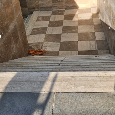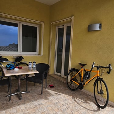 The final activity was some bike maintenance, particularly the replacement of Richard's front brake rotor which didn't look very good on one side because it had spent a few miles with a pad back-to-front after recent bike maintenance (we had discovered the problem when the bike was being reassembled on day 0). The new rotor had been bought at the Pompei Decathlon store which was near the hotel.