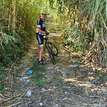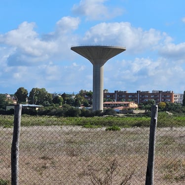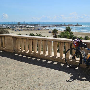 Overall, the final 1½ hours of the day's cycling was very unpleasant. In addition to the rain, there were enormous puddles and the Rome rush-hour traffic seemed to have started early. The roads up and down each side of the Tiber were also the worst encountered so far, not helped by the potholes being full of puddles. The rain was finally clearing when we reached the Hotel Ping Pong in Ostia which was quickly awarded the accolade of the worst so far on the trip (what use is a kettle without any other refreshment making equipment?). We were lucky to have a balcony where we could put soggy clothing to dry.