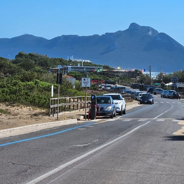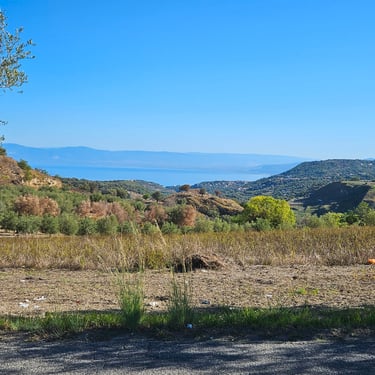 There were some good views at a few points on higher ground but we then had a long and pleasant descent down to the coastal lowlands. This was followed by nearly 20 miles of almost flat cycling along an almost straight road into a moderate SW breeze. Numerous miles cycling in the same position with constant effort become somewhat tedious and my body began to ache. The only consolation was that trees along the road provided shelter from the breeze. I kept looking for opportunities to stop and give my body a break. One stop was at a fruit stall where we bought some pears which I stowed in my bike bags but I saw nothing which merited a photo stop.