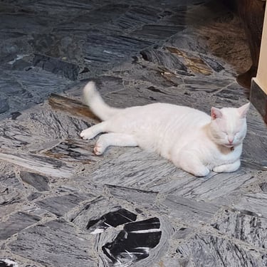 The hotel had a friendly white cat which would keep an eye on the reception if the receptionist was absent.