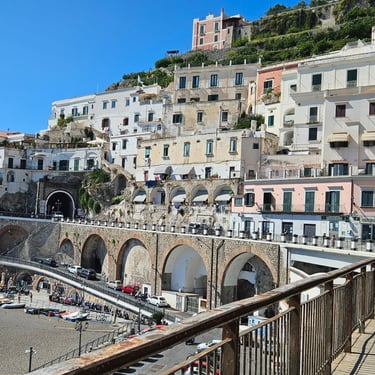 I was keen to get up the hill before it was too hot. Breakfast was available from 7am. Departure was at 08:10 and we reached the tunnel about two hours later. The first part of the journey was through the Pompei suburbs and coincided with the morning rush and taking children to school. There was a significant section of road in flagstones which seem to be even bumpier than cobblestone and we had the surprise of having to carry our bikes through and underpass under a railway which had recently replaced a level crossing.