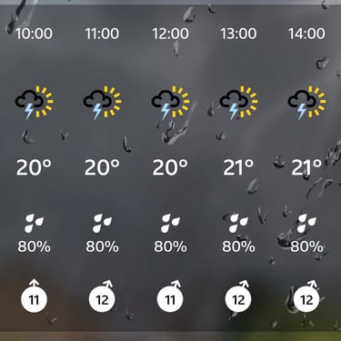 There was much discussion among the group about the weather forecast for the next day, which showed a high probability of thundery showers and triggered a visit to the railway station for investigation of travel alternatives for the next day,