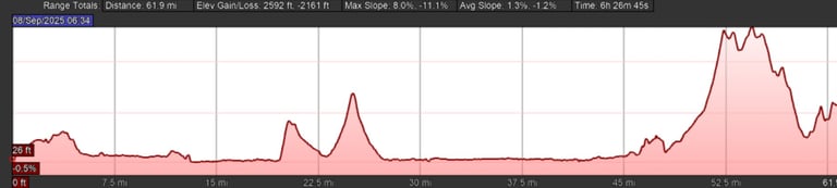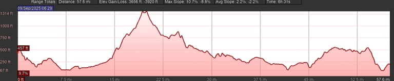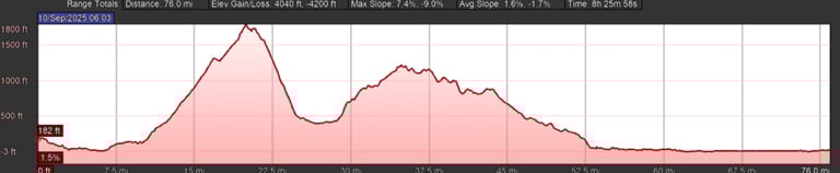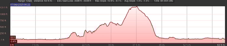 *Ascent according to my Garmin Edge 1040 which usually agrees closely with Google Earth. My Edge 530 usually records about 15% less climbing which is more consistent with RWGPS. I assume that the newer hardware is more accurate.