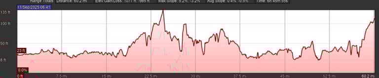 The main task of the day is avoiding Naples. Nearly 70 miles but not too hilly (the auto-scaling profiles are deceptive).