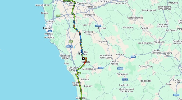 As on previous trips, the bike went to Bike Adventures in a box to be taken to the start on their van. The target arrival time in Pisa was the afternoon of Saturday 6th September and, after due research I concluded that the most convenient flight option would be the afternoon EasyJet flight from Gatwick which, however, was only on weekdays and not Saturdays, so I booked the Friday flight. Trains and plane ran to schedule and I reached Pisa late afternoon and checked in at the hotel.
